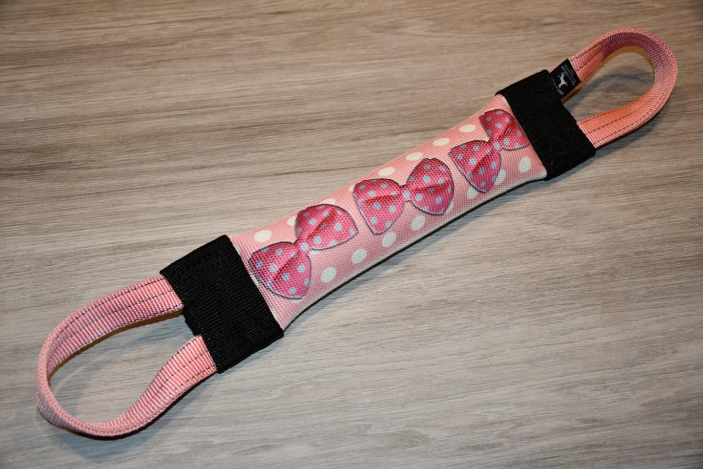 This Pink Polka Dot & Bows Squeaker Fire Hose Tug boasts all the durability of our amazing Bulletproof Fire Hose Tugs, with the bonus of added squeakers. Due to the strength of the Fire Hose material, your dog will have to work extra hard to make it squeak, and the squeak won't be as loud as those annoying squeaky toys you find everywhere online.....But it squeaks loud enough for your pup to enjoy it as you know their hearing is extraordinary. They will have fun without it breaking your brain!!