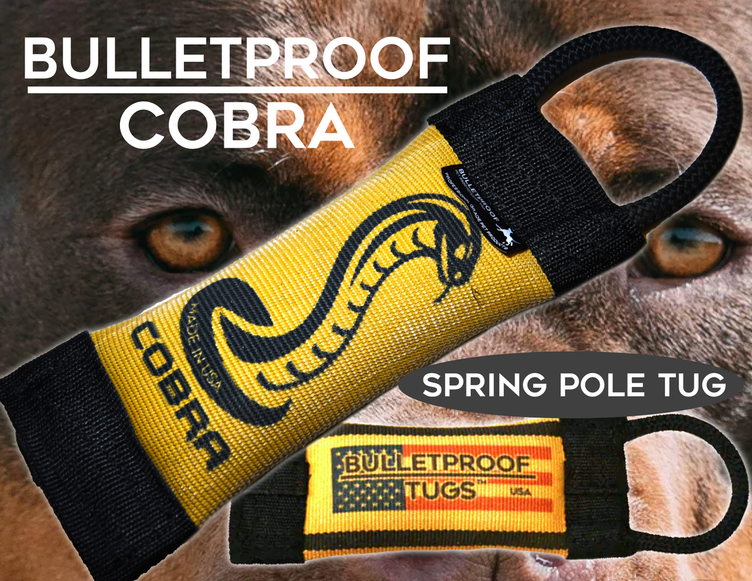 Our Spring Pole tug is back and it’s better than ever! It is ready for you to attach to your spring pole set up. Ready for some tugging and some hang time by your dog or dogs! They are going to love this thang and so are you! If you thought our last spring pole tug was tough, you are going to love this. You will not find another spring pole tug this tough anywhere.