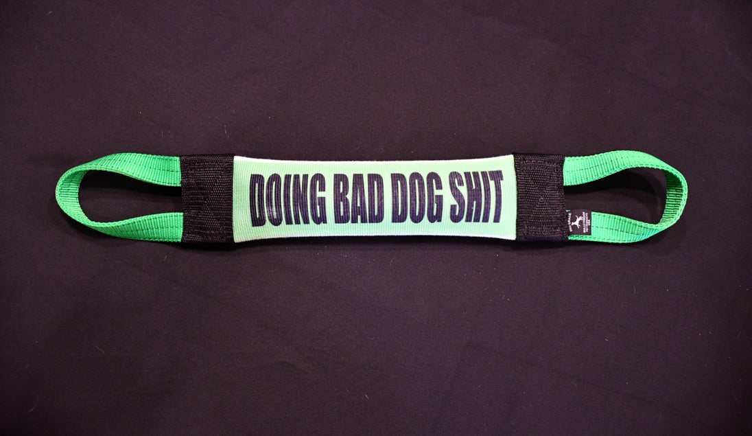 Introducing our DOING BAD DOG SHIT training tug This is one tough tug and it will float. Each tug is made to order, made to last and MADE IN THE USA. These are extremely heavy duty!