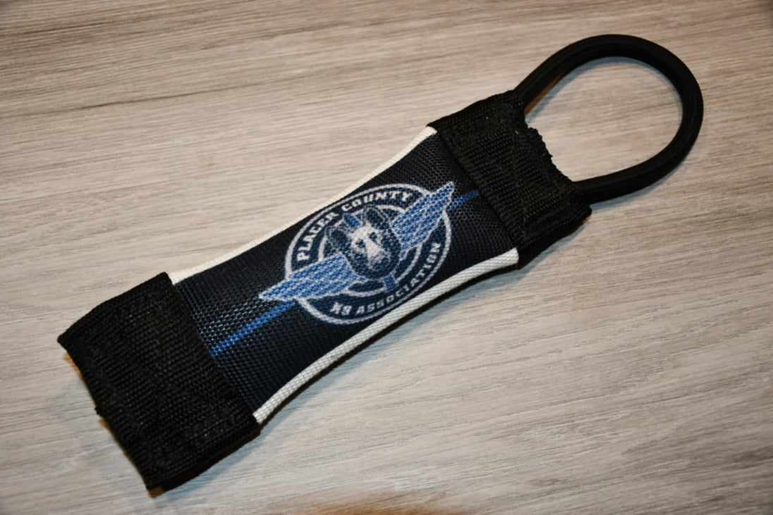 Just what you wanted! A 3-pack of Fire Hose Pocket tugs with you logo on them! You supply the logo and we will personalize them for you. Perfect for K9 handlers with working K9's. These are made with heavy duty 3/8" bungee cord.