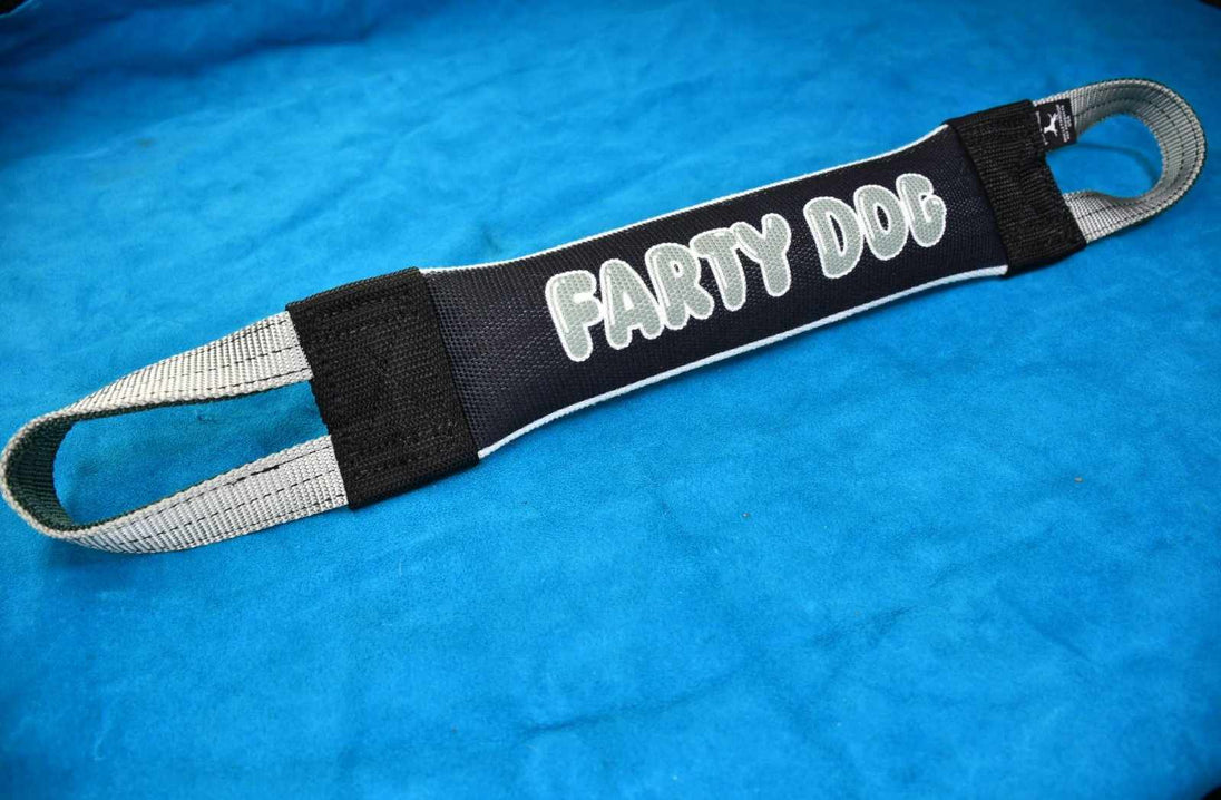 Do you have one of those dogs that just cuts the cheese all the time? This adorable Farty Dog Fire Hose Tug Toy will be perfect for your fartin' pup! This tug toy boasts all the durability of our amazing Bulletproof Fire Hose Tugs with the addition of squeakers inside. The squeak won't be as loud as those annoying squeaky toys you find everywhere online...but it squeaks loud enough for your pup to enjoy it, and they will have fun without it breaking your brain!