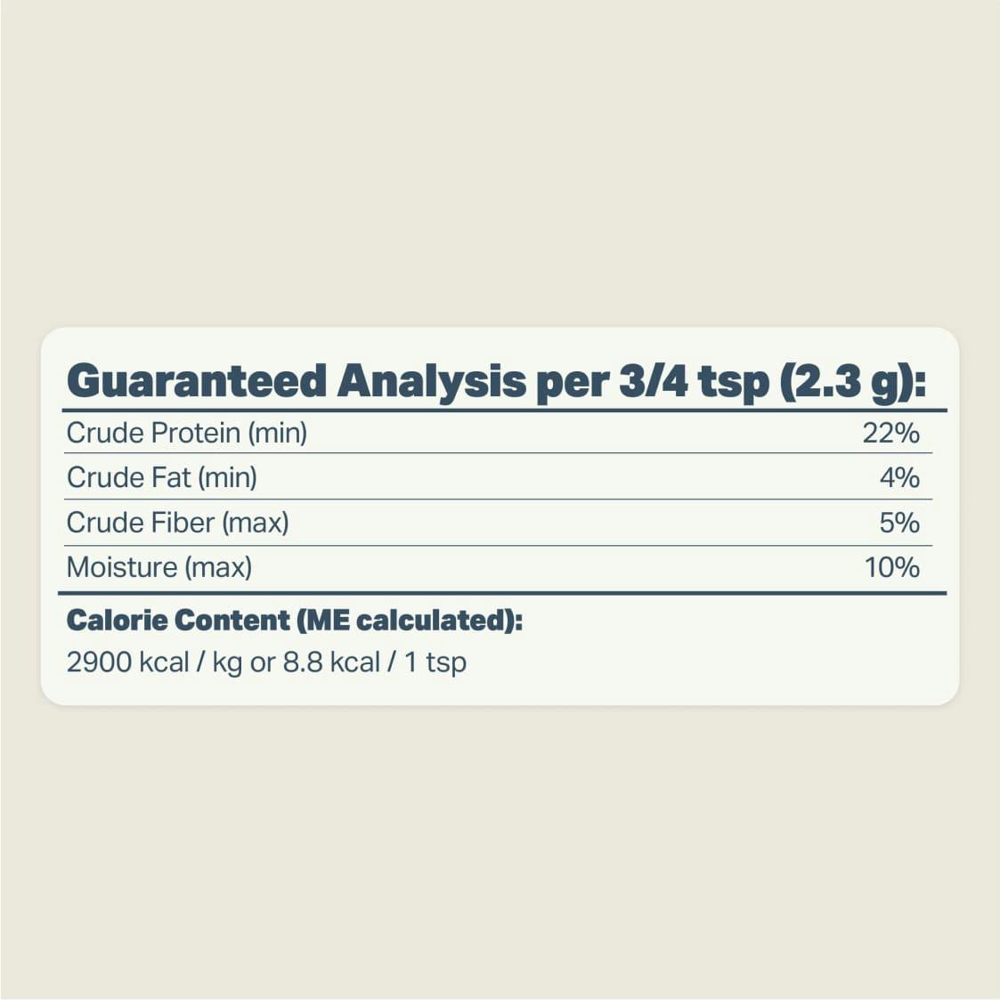 Kibble Fixer restores the important hidden nutrients missing in cooked and processed foods. With a large array of digestive enzymes, hardy soil-based probiotics and antioxidants from organic fruits and veggies, Kibble Fixer adds life to processed foods.