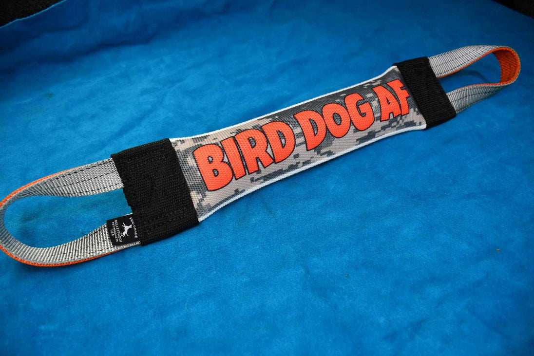 Got that awesome bird dog that's just the most awesome Bird dog? Well here is a wonderful reward tug for him or her. Made with an awesome camo pattern and bright orange handles and and writing to keep you from losing it! This is one awesome AF tug!