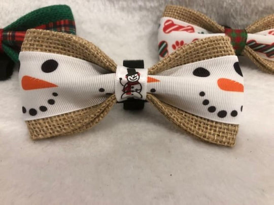 Vendor: Dog Bow Ties Frosty The Snowman Dog Bowtie Each bow tie measures 5" and has adjustable velcro on the back to easily fit around collars and harnesses.Made in United States of AmericaRegular price $10.00