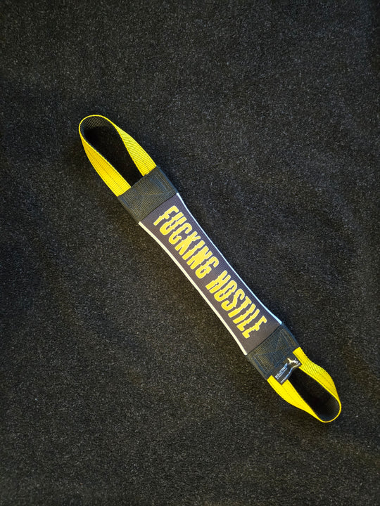 Vendor: Bulletproof Pet Products Inc Fucking Hostile Fire Hose Training Tug (bad tug line) NEW AND IMPROVED! NOW OUR LOOPS HAVE TWO LAYERS OF WEBBING PROVIDING TWICE THE STRENGTH! Introducing our FUCKING HOSTILE training tug This is one tough tug and it will float. Each tug is made to order,...Regular price From $55.00