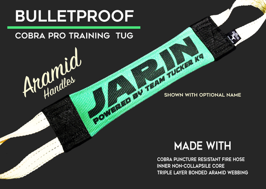Vendor: Bulletproof Pet Products Inc Green Cobra Pro Fire Hose Training Tug - 4 Layer tug Aramid Handles optional Green Cobra Pro Fire Hose Tug with Aramid Handles Our new Cobra Pro training tug is a totally different animal....It is made of the toughest Fire Hose we have ever had! It is 4 layers instead...Regular price From $85.00