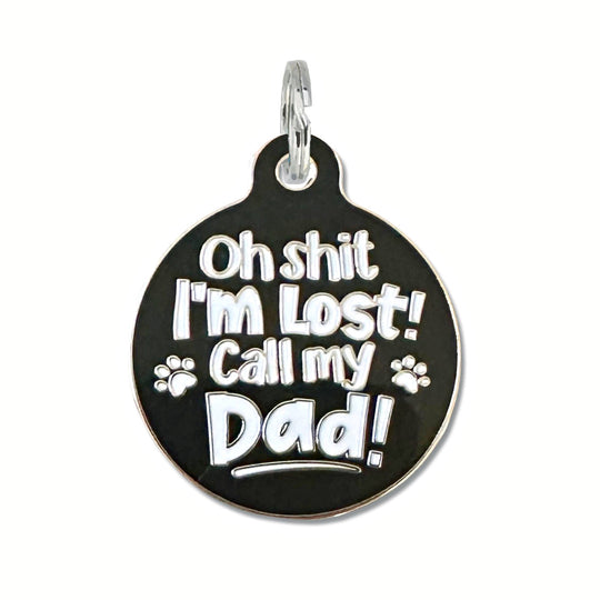 Bad Tags - Black Enamel Dog Tag Charm - Oh Sh*t I'm Lost Call my Dad!