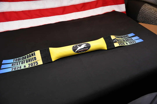 Yellow Nitro Ribbed with printed tassels - Dock Diving Bumper Tug - Competition Weighted