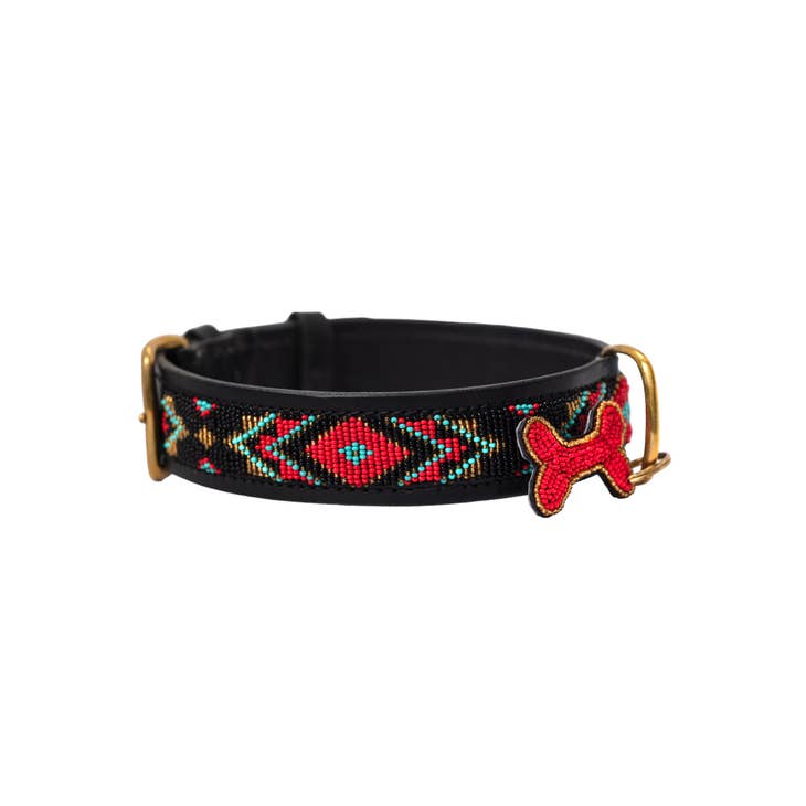 Handmade dog collar. All products from AtelierZinj are of natural Kenyan cow leather - vegetable tanned. The interior is lined with vegetable-tanned goatskin. All the brass details are molded by hand from recycled brass, executed by local craftsmen. The dog collars are beautifully hand beaded with 100% pearls of glass. The pearls are sewn on by hand for extended durability.