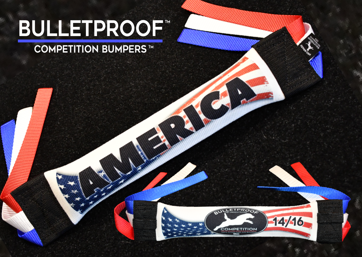 Check out this America Bulletproof dock diving bumper! Featuring a wavy patriotic U.S. Flag.