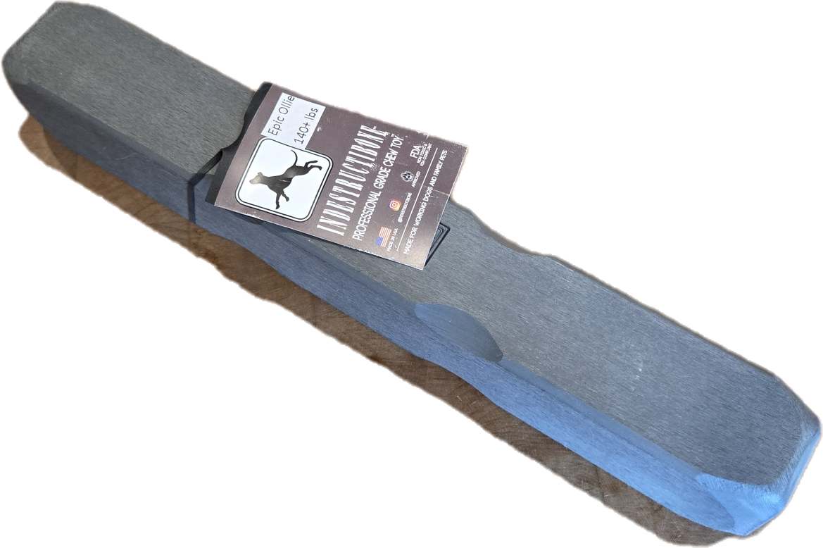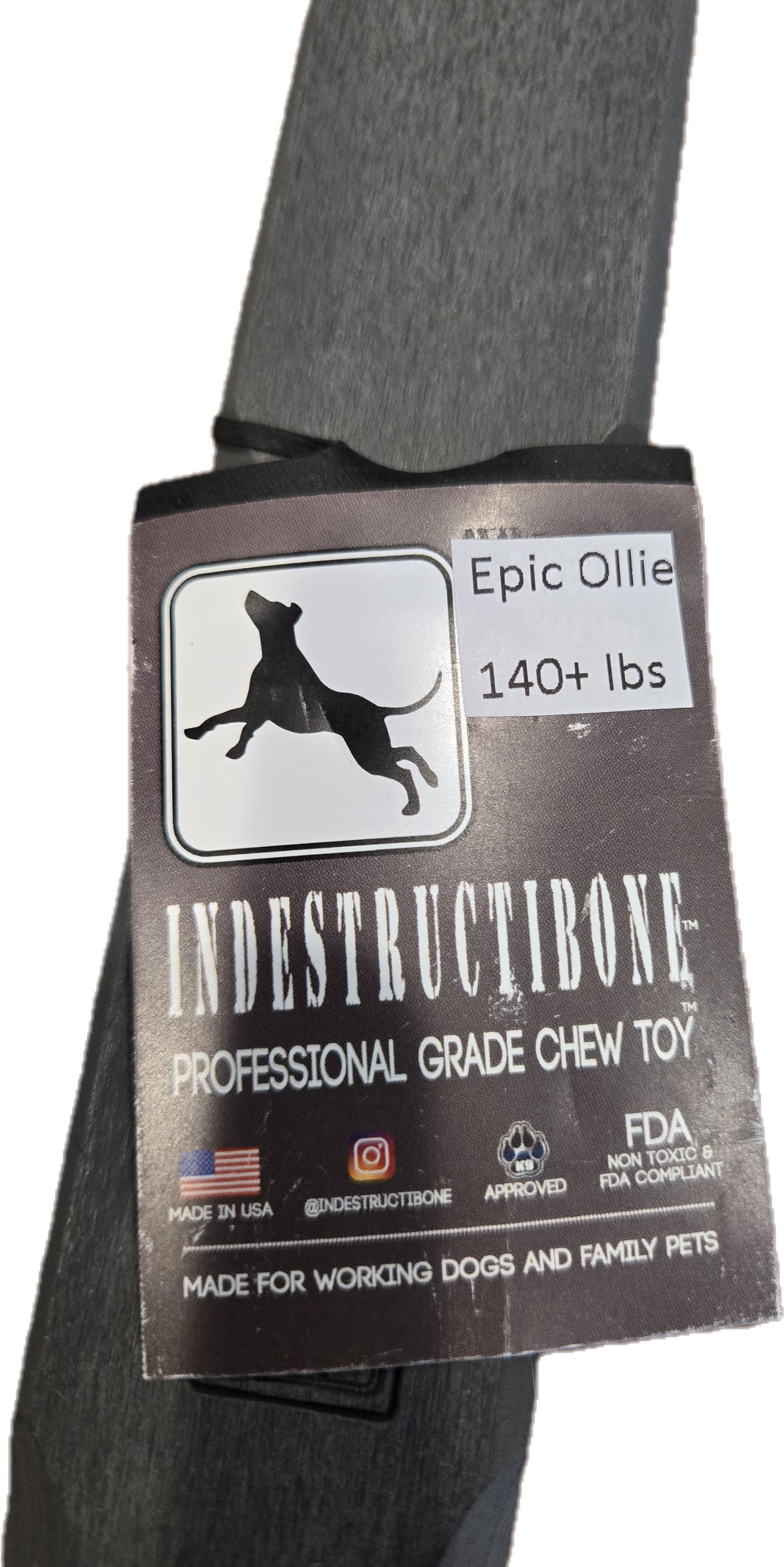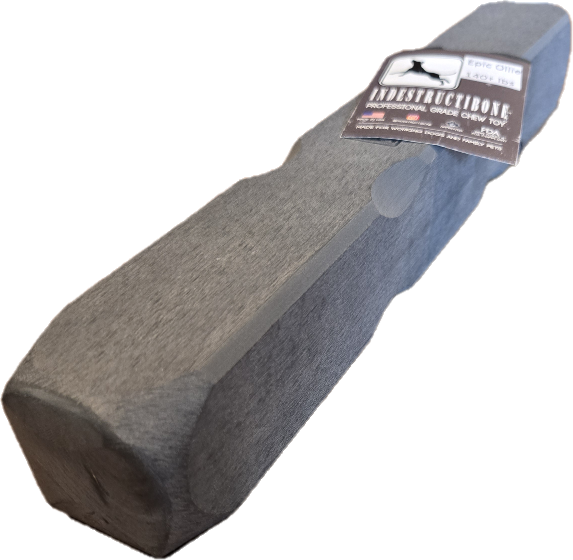 This Indestructibone chew toy should only be ordered by humans that already know that their dog loves the Indestructibone chew toy. There is no 30 day satisfaction guarantee on this bad boy. It is made for Indestructibone lovers that weigh 140 pounds or more. It is on our special secret menu. We released this chew toy in 2017, but took it off the website and only sold it to repeat customers. This Indestructibone is special. It has no treat hole. It is made for dogs that carry around weights and chew up everything in site. It is SOLID and weighs in at 1 pound 8 oz. (approximate weight). It still comes with the 90 day replacement guarantee. If your dog chew this bad boy down to 7 inches within 90 days or less, you will get a free one. This has never happened on the Epic Ollie. You must report in before it gets to 6"....
