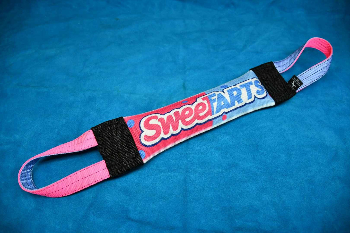 Does your dog toot? Maybe you love 'em so much it's a Sweet Fart? Well anyway....This parody tug - Sweet Fart looks like a candy we all enjoyed growing up. This tug is as sweet as candy and provides the squeak your dog will love!
