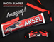 Please make sure to enter the name you want on the bumper (and any other info needed) in the "Order Special Instructions" box on your cart page. If you cannot find this, simply respond to your order confirmation email after purchasing the bumper.