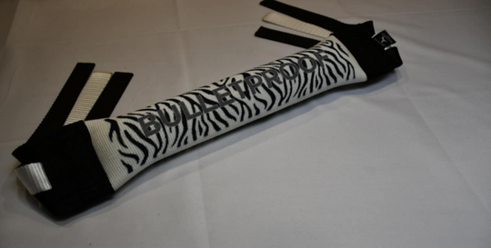 Check out this Wild Zebra - Bulletproof dock diving bumper! “For dogs that jump on the wild side.” Tassels are black, white, black and loops will be black bonded to white. 🚀 Dominate the Dock with Bulletproof...Regular price From $120.00 -