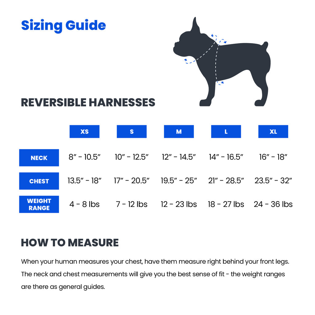 - Fully reversible - you'll be safe and comfortable wearing either side. Our new upgraded reversible harness features smooth neoprene on both sides for the best look possible!